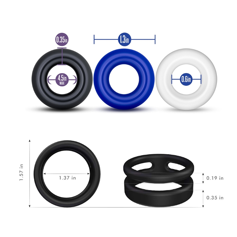 Только Кольца для пениса, другие демонстрационные аксессуары на картинке не включены.
