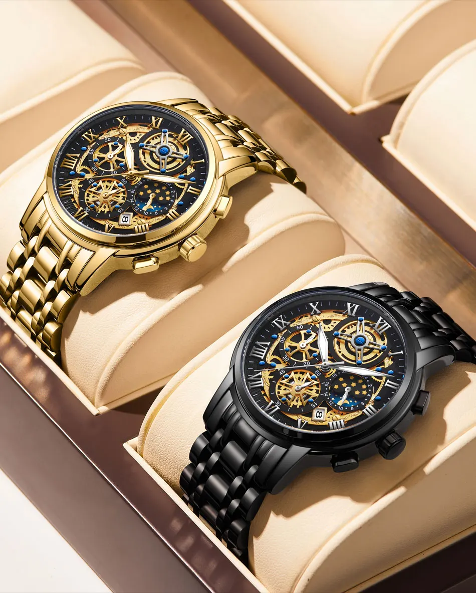 1. Часы с хронографом, маленький секундный циферблат, маленький минутный циферблат, маленький циферблат 24 часа.