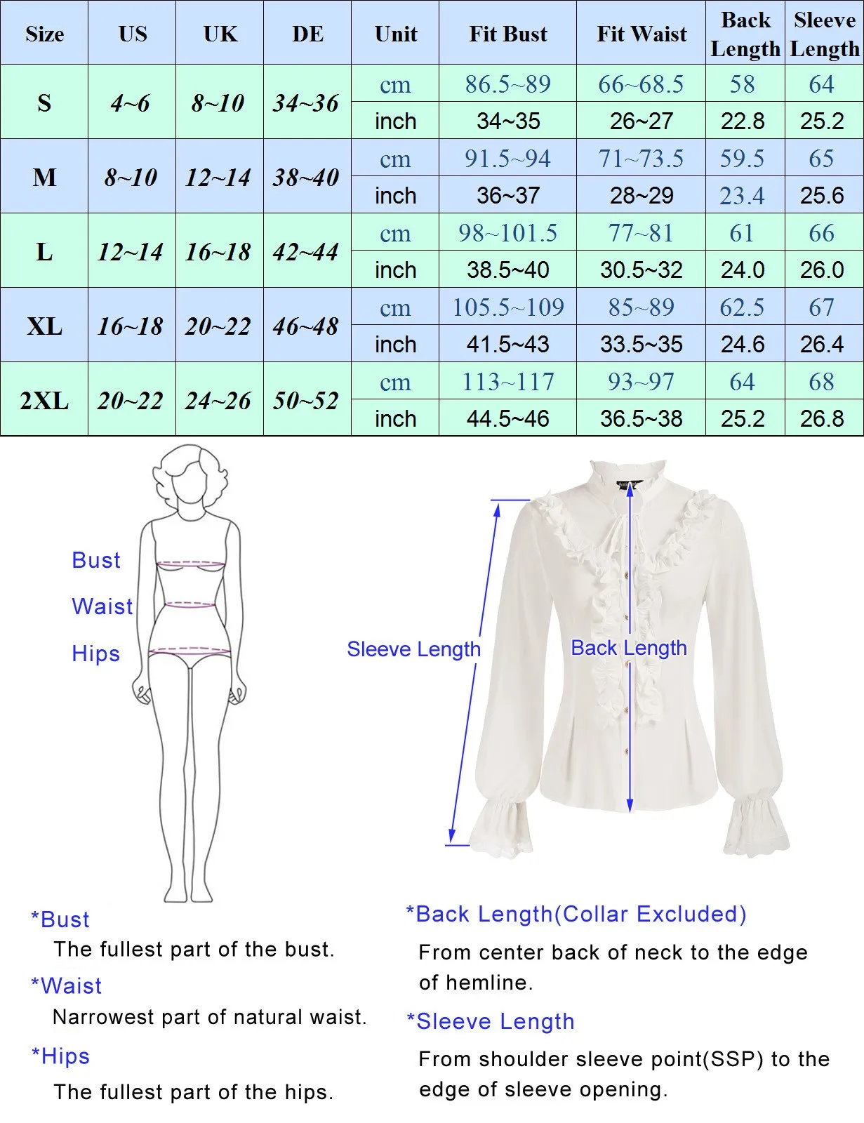 Размеры | США | Великобритания | DE | Блок | Подходит для бюста | Посадка на талии | Длина спины | Длина рукава |