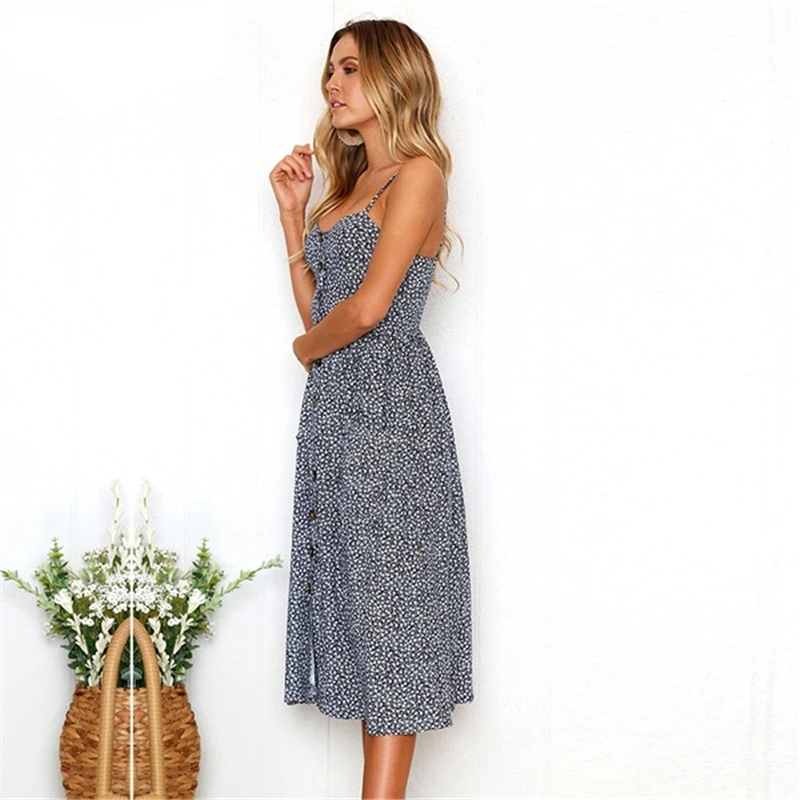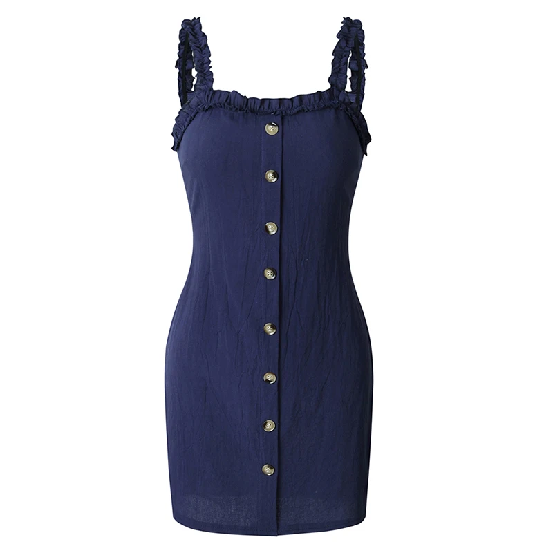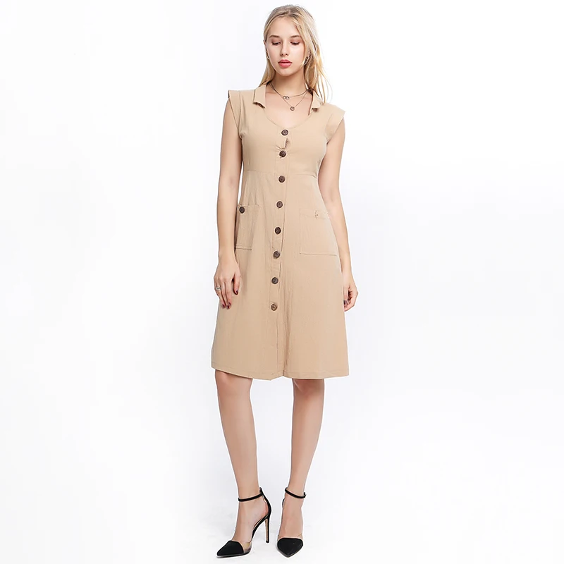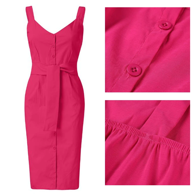 Женские однотонные платья без рукавов с v-образным вырезом и пуговицами для отдыха, пляжные вечерние платья с поясом es Vestidos Verano 2020
