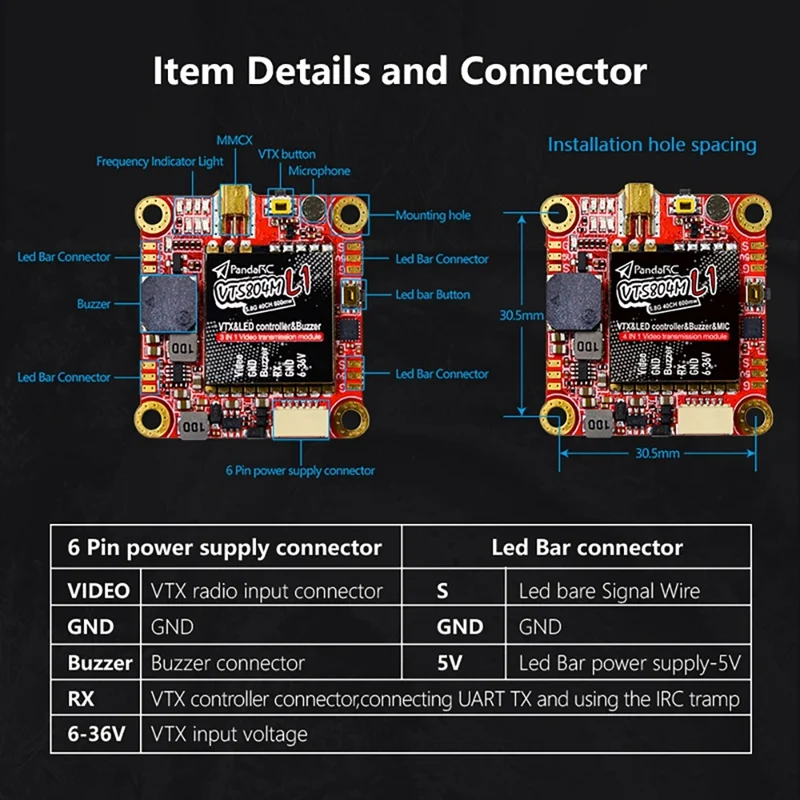 PandaRC VT 5804 ML1 VTX 600mW/4 в 1 (VTX + LEDbars + Buzzer t MIC) mmcx;