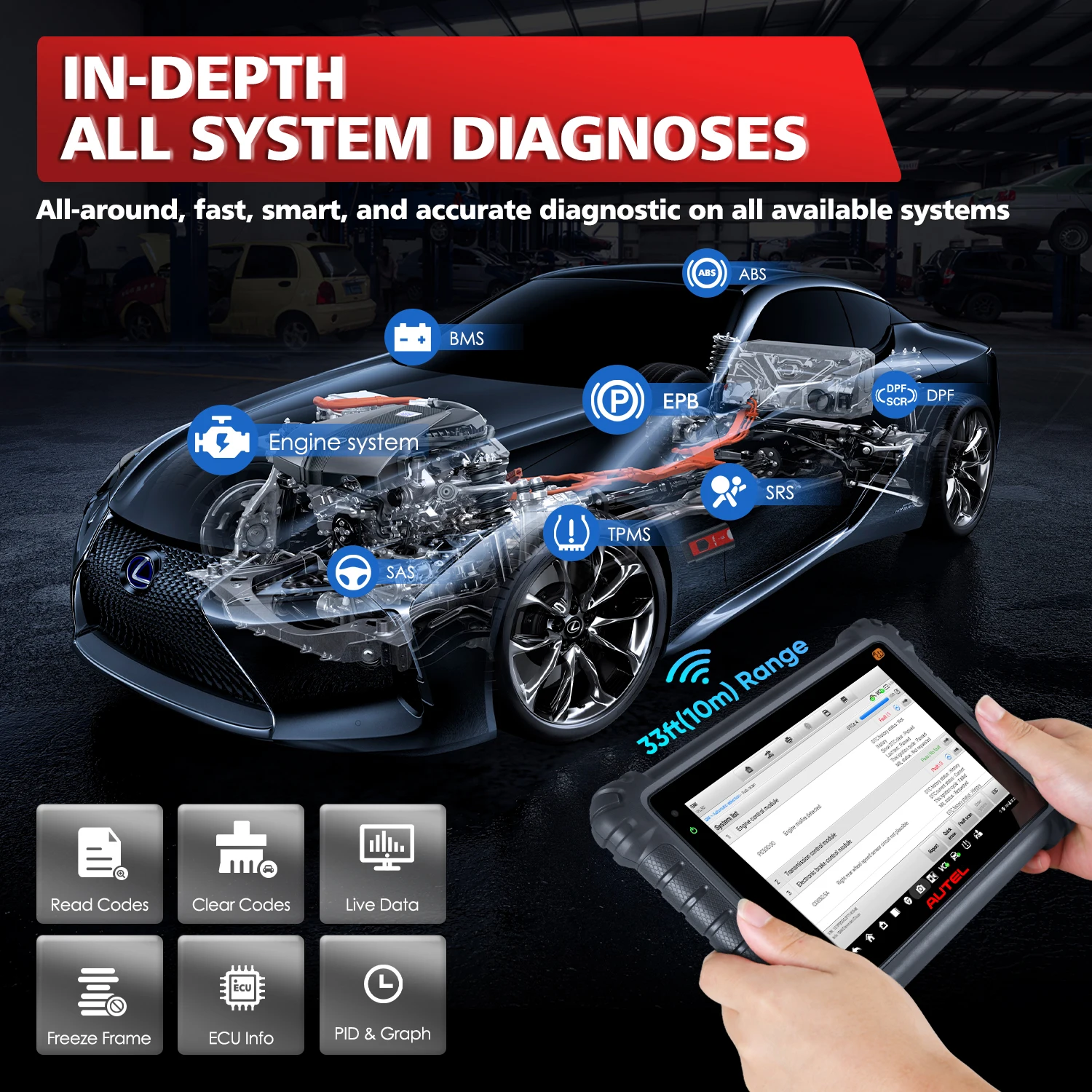 Проникая во все доступные ECUs, включая, но не ограничиваясь PCM, ECM, EPS, PDM, TPM, BCM, ABS, SCCM и т. Д., MK906PRO TS извлекает информацию и выполняет диагностику на уровне OE всех доступных транспортных систем, таких как чтение и четкие коды, просмотр потока данных и информации о транспортном средстве, замена ECU, Калибровка нулевой точки (Toyota), проверка сигнала (Toyota), инициализация (ECU) и функция управления (VAG). Это не только позволяет быстро устранять проблемы, но и позволяет настроить конфигурацию.