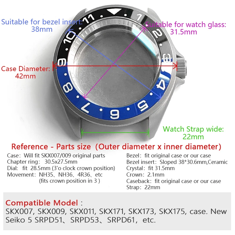 Подходит для моделей SKX:SKX007, SKX009, SKX011, SKX171, SKX173, SKX175