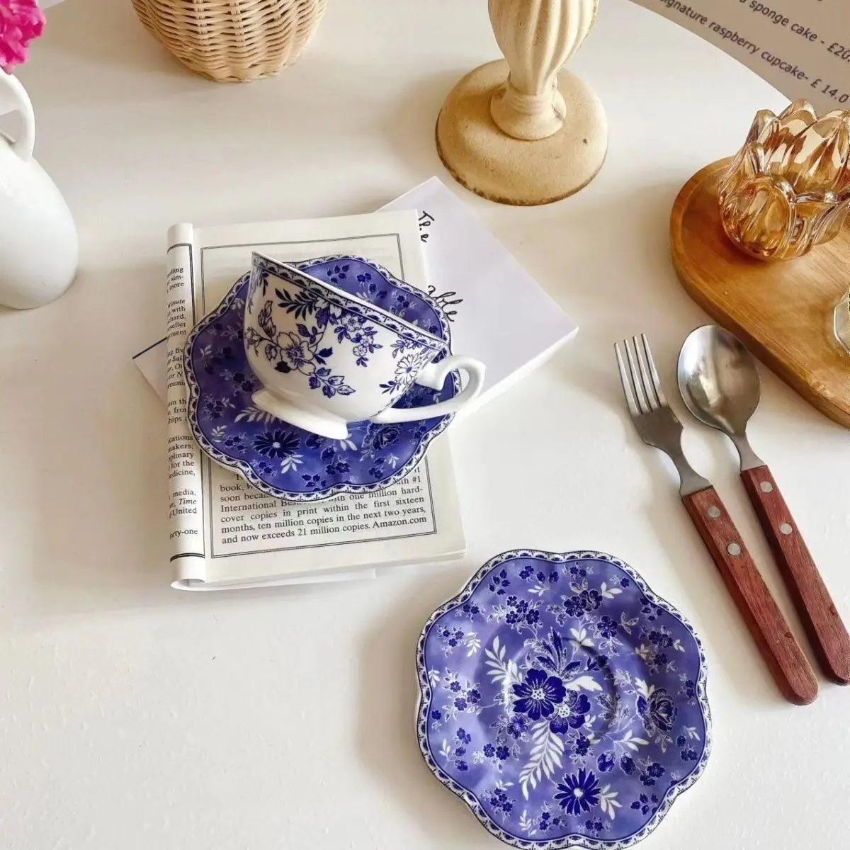 Ceramic Coffee Cup Saucer Gift Box Chinese Style Creative Color Matching Teacup Set Blue and White Porcelain Handle Mug Water