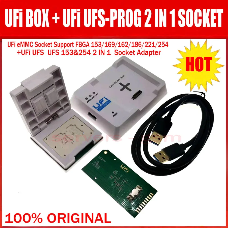 UFi Box-это мощный сервисный Инструмент EMMC, который может считывать данные пользователя EMMC, а также восстанавливать, изменять размер, Форматировать, удалять, читать и обновлять прошивку на EMMC в Samsung, китайский телефон SK Hynix, Toshiba, Kingston, micron и другие бренды.