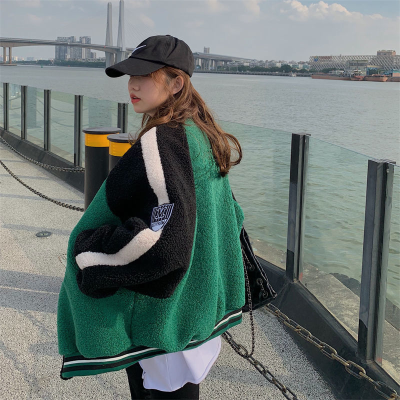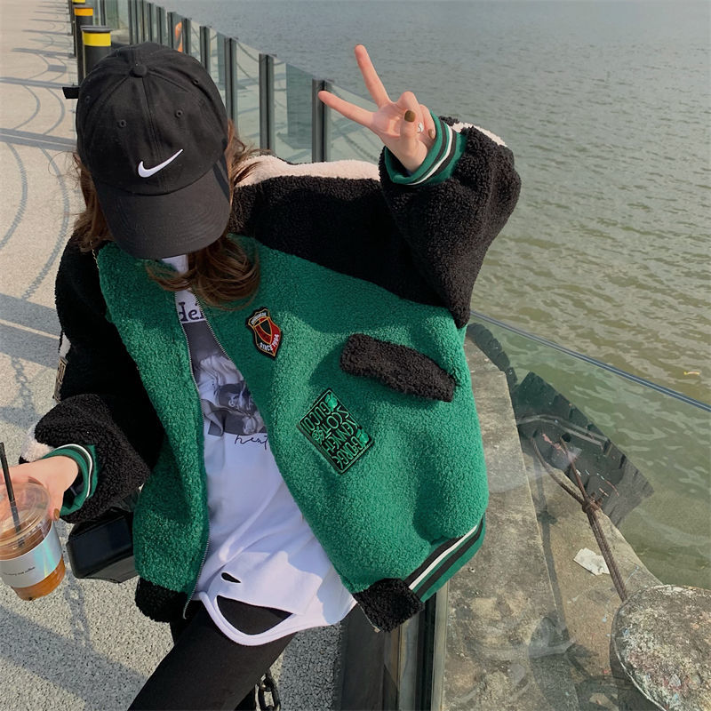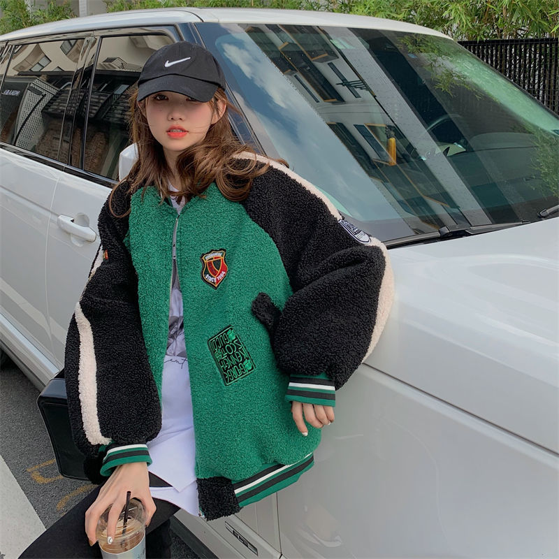 Deeptown/куртка из овечьей шерсти в Корейском стиле; Винтажные укороченные бейсбольные куртки большого размера в стиле Харадзюку; Уличная одежда; Y2k; Женские осенние пальтоUSD 35,47 ~ USD 35,47/Шт.