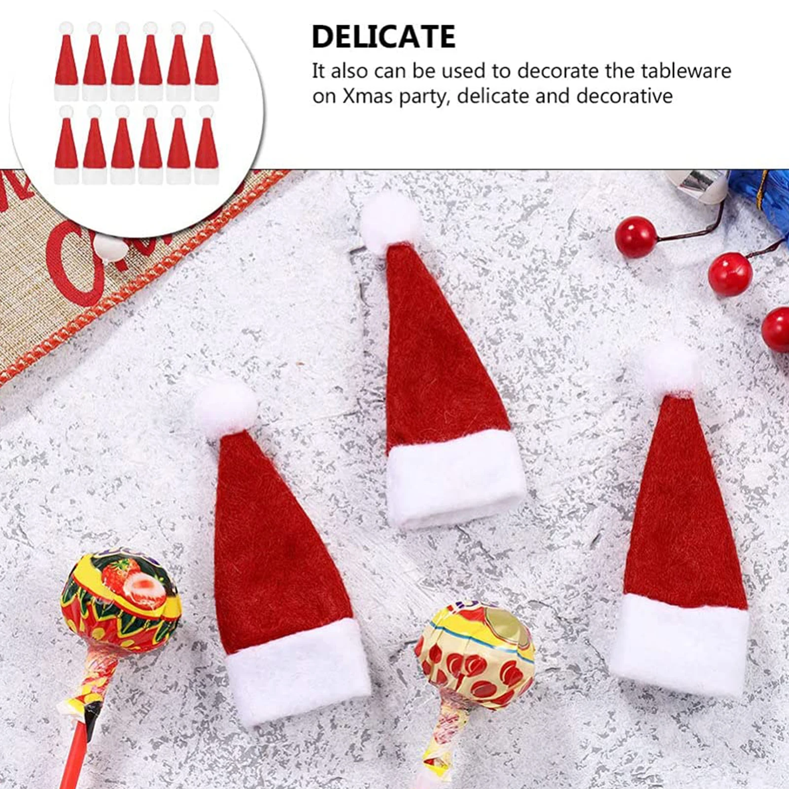 1 、 【Дизайн рождественской шляпы】 Мини-шляпы Санты очень милые и могут идеально украсить рождественские стеллажи из серебра, декоративные Леденцы На Палочке, винные бутылки и различные маленькие бутылки, а также украсить все виды рождественского реквизита.