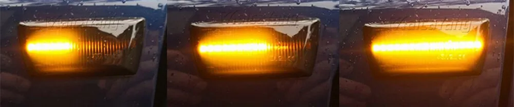 Тип: светодиодный светильник с поворотным сигналомМатериал: высококачественный корпус из поликарбоната + светодиодный светильникНапряжение: 12 ВСветодиодный светильник цвет: желтый/янтарныйЦвет корпуса: Копченый черныйСертификат: IP67 E-mark, CE, DOT, SAEРазмещение на транспортном средстве: слева, справа, спередиСписок включает: 2 × светодиодный, боковой, габаритный фонарь (левый и правый)Преимущества: Динамический сигнал поворота, прокрутка плавно. Легче видеть другие драйверы, когда вы поворачиваетесь вправо/влево.Новый красивый дизайн.Подарите вашему автомобилю уникальный Премиум-европейский стиль с отличным светодиодным освещением и повышенной безопасностью.