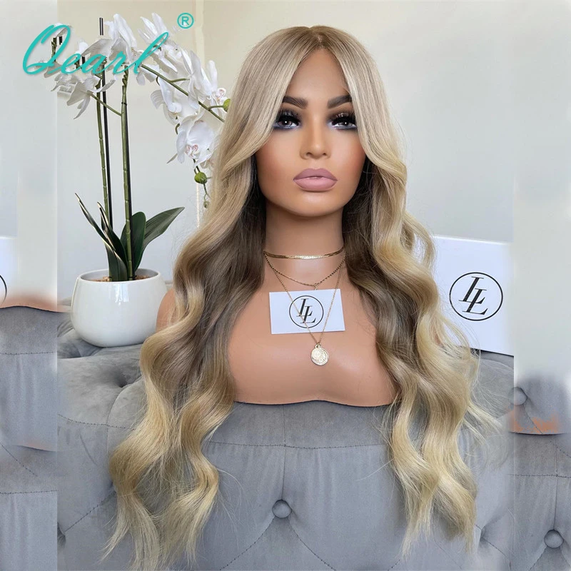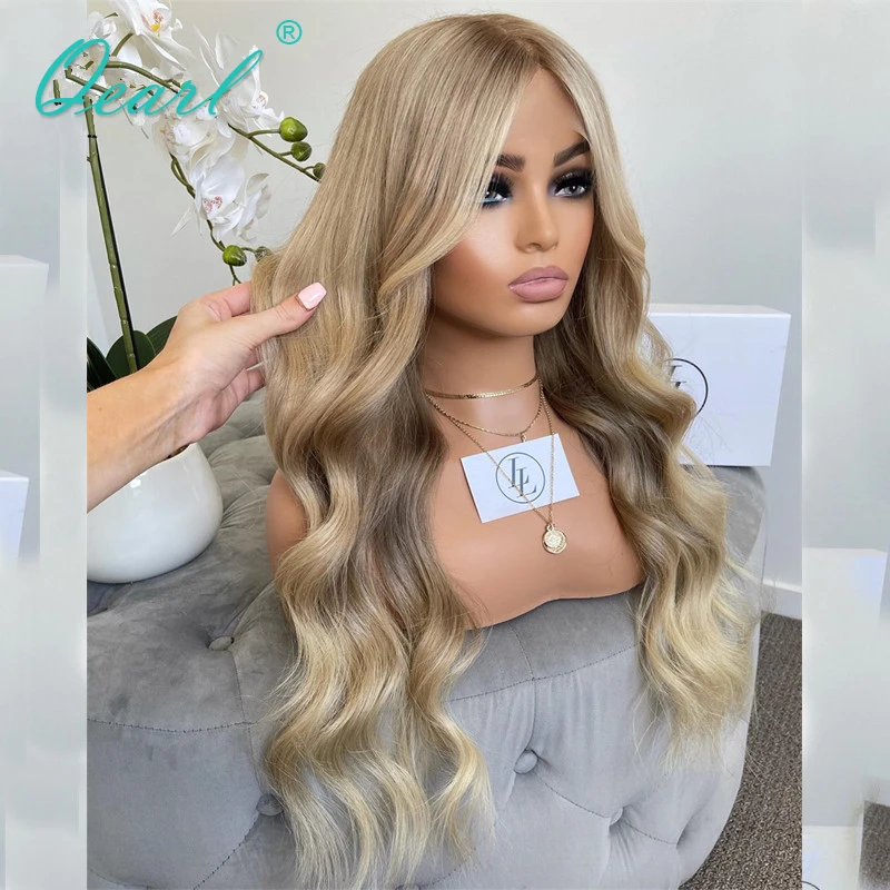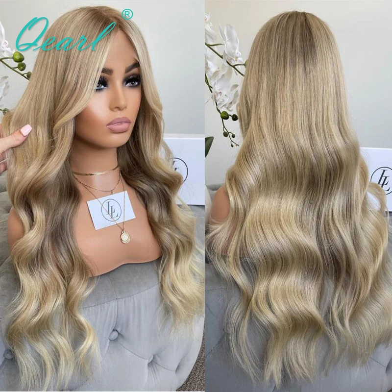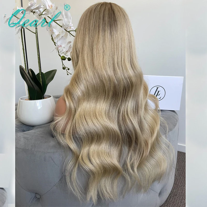 Невидимые прозрачные кружевные фронтальные парики, объемная волна, теплый медовый пепельный блонд, основные человеческие волосы, полный кружевной парик 180%, дешево Qearl