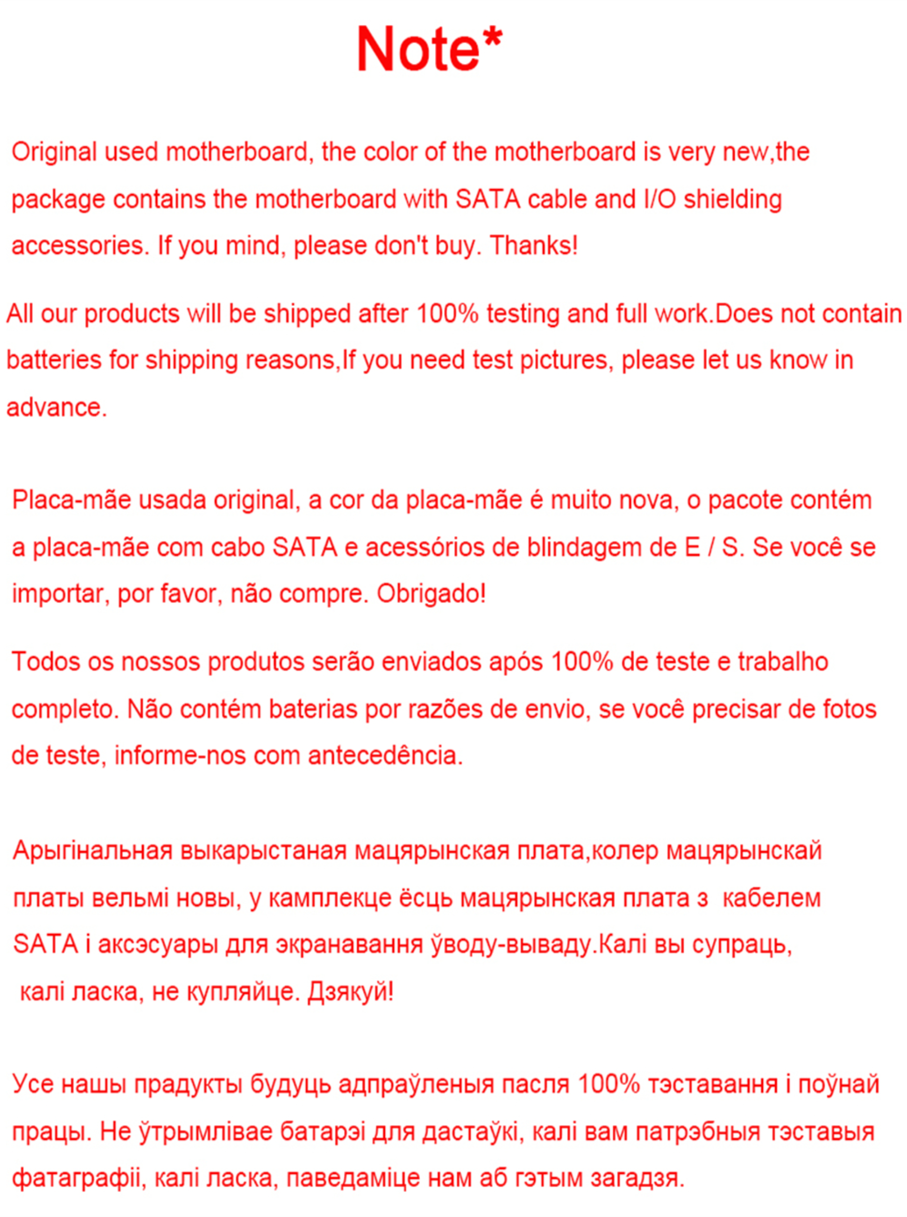 Магазина Used Motherboards Store работает с 29.07.2019. его рейтинг составлет 89.35 баллов из 100. В избранное добавили 9917 покупателя. Средний рейтинг торваров продавца 4.6 в продаже представленно 1163 наименований товаров, успешно доставлено 3654 заказов. 3088 покупателей оставили отзывы о продавце.