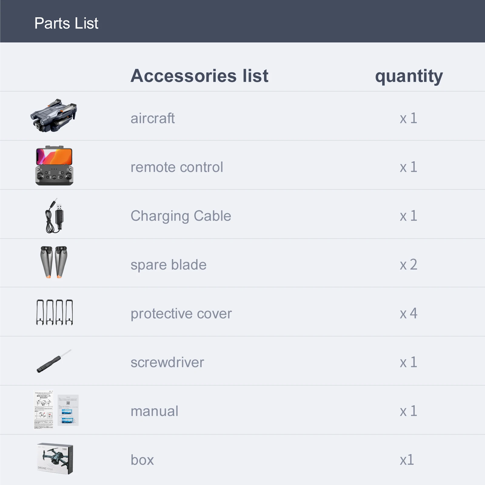 Характеристика: 1. HD изображения и видео в реальном времени:Оснащен камерой Wi-Fi 4K HD, она может делать лучшие аэрофотоснимки и видео в режим наклона 150 °; Через передачу FPV вы можете видеть небо с видео в режиме реального времени через приложение для смартфона. 2. Лучшая игрушка для дрона для детей:Mini 4 очень прост, просто нажмите кнопку «старт/земля» в одно касание, чтобы начать полет; Функция возврата одной кнопкой, Дрон может прилететь к вам; вы можете держать Дрон на определенной высоте, это делает его очень легким в управлении и снимать высококачественные кадры. 3. 3D флип и управление приложением:Нажмите кнопку ролл и нажмите джойстик внутрь, чтобы выполнить im нажмите ive flip; Нарисуйте траекторию полета на вашем смартфоне, и Дрон будет летать соответственно, добавив удовольствие для вашего полета. Выключите пульт дистанционного управления и Используйте приложение для прямого управления дроном для полета. 4. Мощный и безопасный:Светодиодный индикатор гарантирует, что состояние дрона может наблюдаться во время ночного полета. 150 ° Регулировка электрического рулевого механизма, шестиосевой гироскоп, более стабильный полет и более удобное управление. Литиевая батарея 2000 мА · ч может работать около 18 минут, безопаснее заряжать, а время полета больше. 5. Трехсторонняя функция предотвращения препятствий:Инфракрасная трёхсторонняя Индукционная избегание препятствий больше подходит для начинающей летающей практики, гарантируя, что Mini 4 не легко столкнется и вызовет несчастные случаи при полете. Оптическое позиционирование потока делает Дрон более стабильным и простым в управлении. Спецификация: Происхождение: материковый Китай Рекомендуемый возраст: 12 + y Характеристики: Wi-Fi, управление через приложение, предотвращение препятствий, FPV Состояние сборки: готово к работе Посылка включает в себя: пульт дистанционного управления, батареи, камеру, оригинальную коробку, инструкции по эксплуатации, usb-кабель Аэрофотосъемка: Да Тип: вертолет Пульт дистанционного управления: Да Источник питания: электрический Мотор: Мотор щетки Сертификация: CE Номер модели: Радиоуправляемый Дрон Режим контроллера: MODE2 Тип крепления камеры: фиксированное Крепление камеры Использование в помещении/на открытом воздухе: в помещении и на открытом воздухе Уровень мастерства оператора: начинающий, средний Разрешение видеосъемки: 4K UHD Размер изделия: в сложенном виде: 13x8x 5 см/5.12x3.15x1.97in, в разложенном виде: 26x24x1 5 см/10.24x9.45x5.91in Цвет изделия: серый, белый, черный Материал изделия: пластик + металл + электронные компоненты Частота приема: 2,4G Количество каналов: 4CH 6-осевой гироскоп Модель двигателя: 816 мотор без сердечника Расстояние дистанционного управления: около 100 м Режим дистанционного управления: дроссельная заслонка с левой стороны Быстрая и медленная передача: быстрая/медленная передача Угол Линзы: Электрическая регулировка сервопривода 150 ° Дальность транспортировки: около 30-50 м Количество батарей: 1 шт., 2 шт., 3 шт. Информация об одной батарее: Емкость аккумулятора: 2000 мАч литиевая батарея Время зарядки одного аккумулятора: около 1 ч Время работы одного аккумулятора: около 18 минут Способ зарядки: зарядка через USB Батарея дистанционного управления: 3 X AAA (не входит в комплект) Примечание: В связи с различиями мониторов и эффектами освещения реальный цвет товара мож