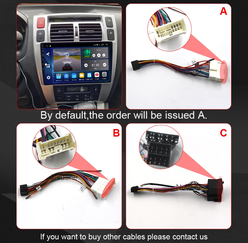 There are 3 types power cable for Hyundai Tucson 2006-2013,we will send the cable A by default.