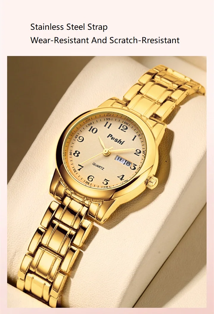 POSHI женские часы модные золотые женские часы из нержавеющей стали водонепроницаемые кварцевые наручные часы ЖЕНСКИЕ НАРЯДНЫЕ Часы relogio feminino