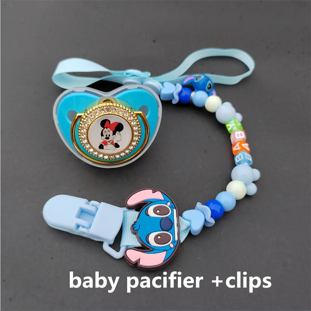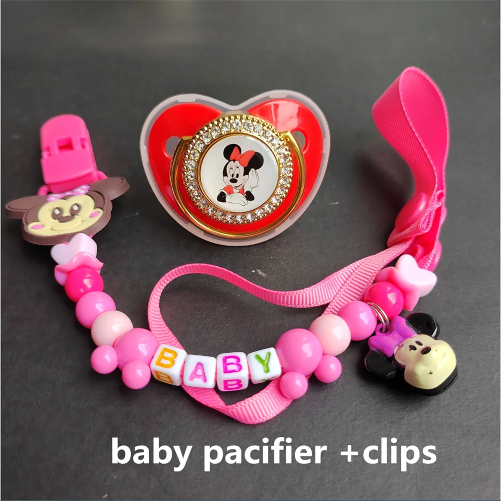 Пустышка с изображением Минни Маус, Роскошные зеленые стразы, пустышка с клипсами для соски, подарок на день рождения