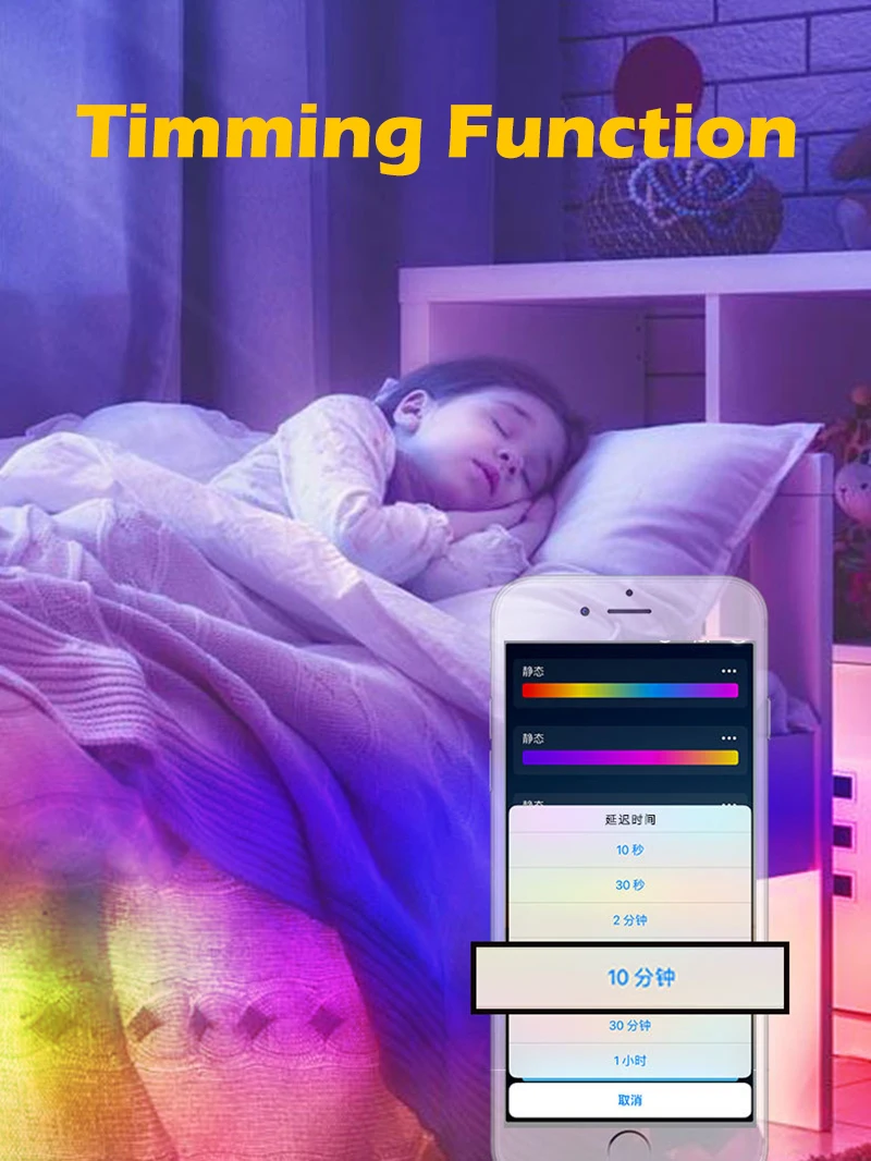 1. Мобильный телефон может использовать приложение для управления и регулировки цвета и яркости полосы светильник через smart bluetooth