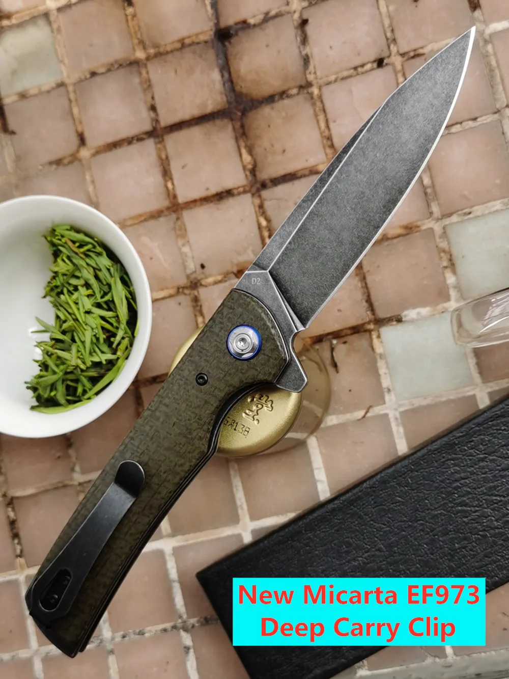 Мой брат, eafengrow, теперь обещает своему новому продукту использовать настоящую сталь D2. Это их самый большой складной нож EF973 (M2) на данный момент. Очень хорошо на ощупь.