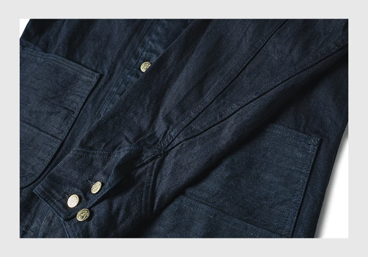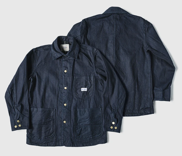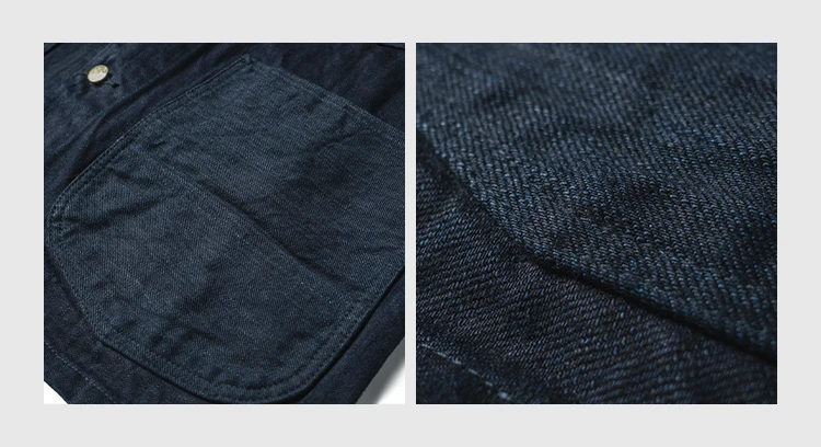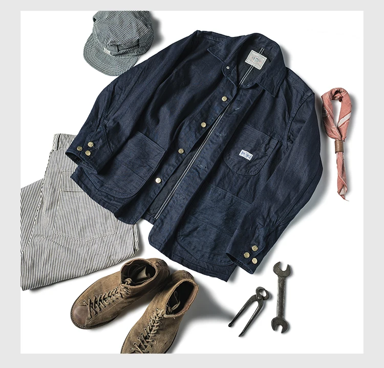 Нестоковая джинсовая куртка винтажная рабочая одежда для мужчин железнодорожное пальто 91-J синий