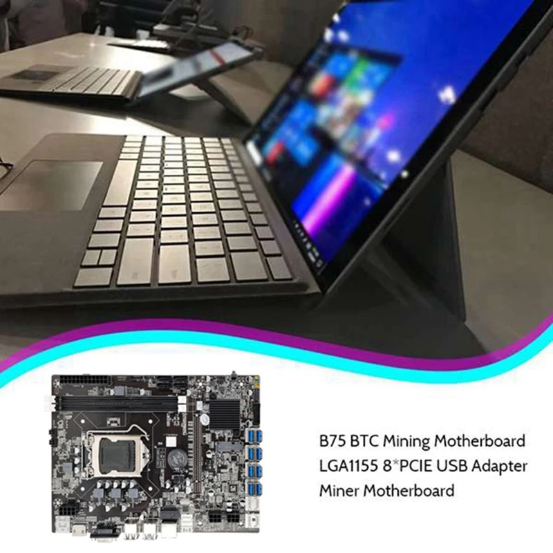 B75 8USB BTC Mining Motherboard+G530 CPU+64G USB Driver+SATA Cable+Switch Cable+Thermal Grease+Baffle For ETH Miner