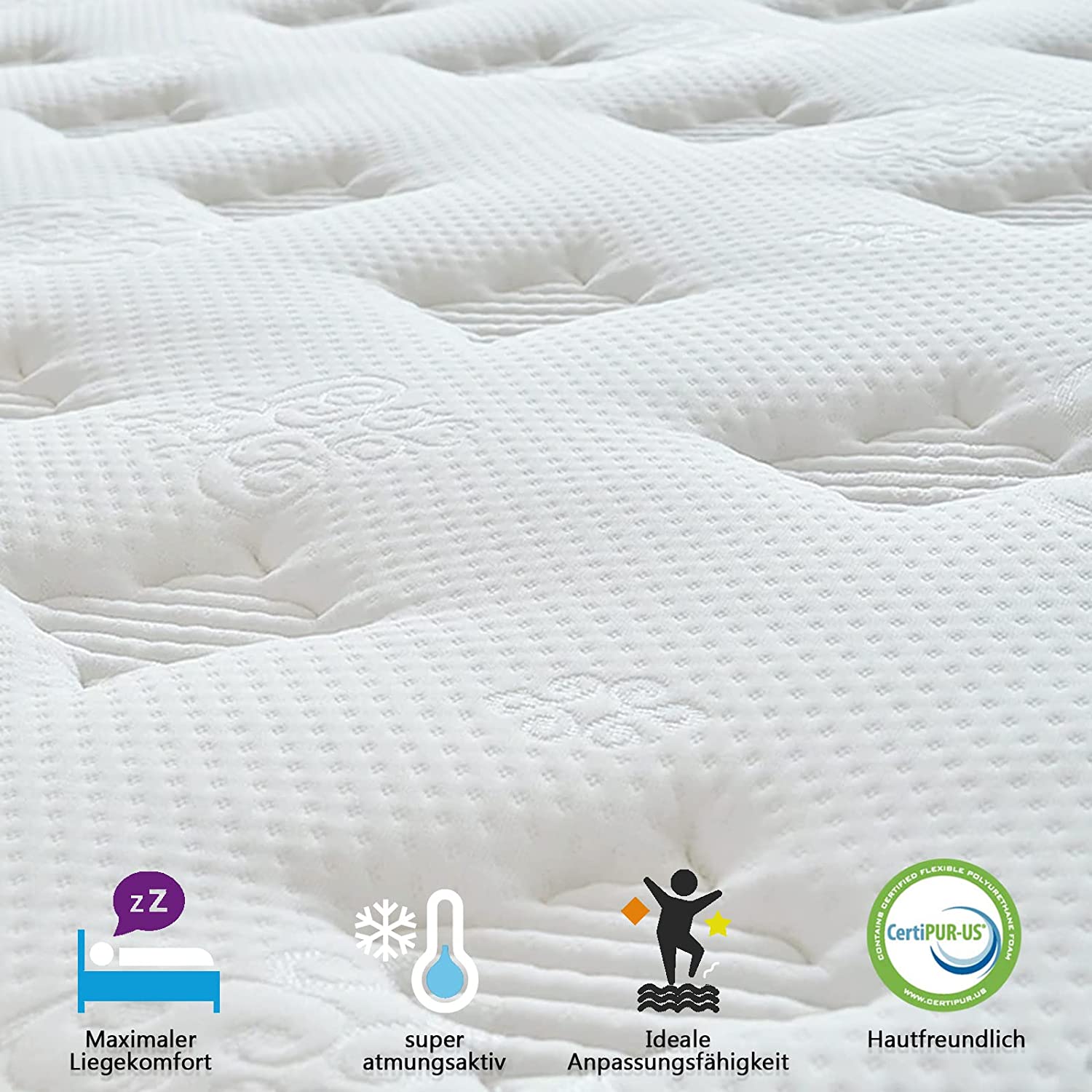 Воздухопроницаемость: Карманный пружинный сердечник для лучшей стабильности и вентиляции матраса. Поскольку он имеет пружинный сердечник, воздух постоянно пропускается. Вы не потеете так сильно, как на матрасе из чистой пены.