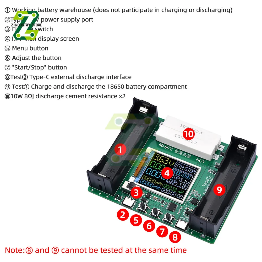 Кол-во тестов: 1-канальный зарядки и разрядки измерения (правая сторона положение батареи только)