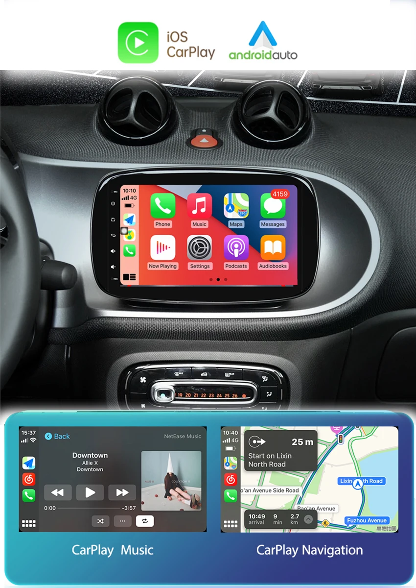2DIN 4 + 64G Автомобильный Радио Android мультимедийный плеер Carplay Авто GPS навигация для Mercedes Benz Smart 453 Fortwo 2014