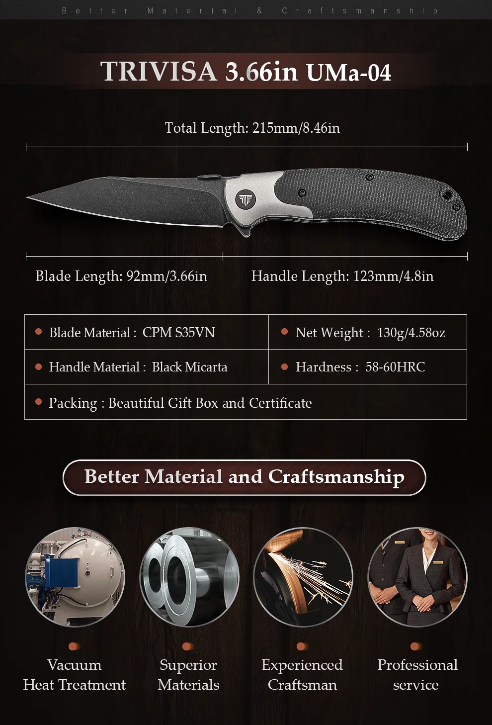 TRIVISA UMa серии 3,66 дюймов CPM S35VN порошок стальной складной нож