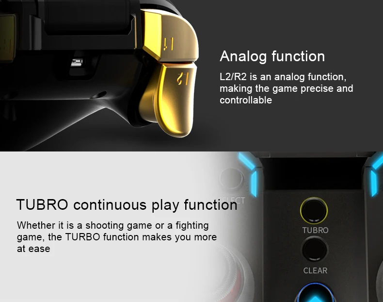 Продукт использует чип Bluetooth 4,0, чрезвычайно быструю скорость передачи, что дает вам плавный игровой опыт.