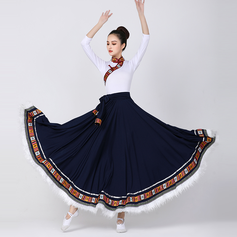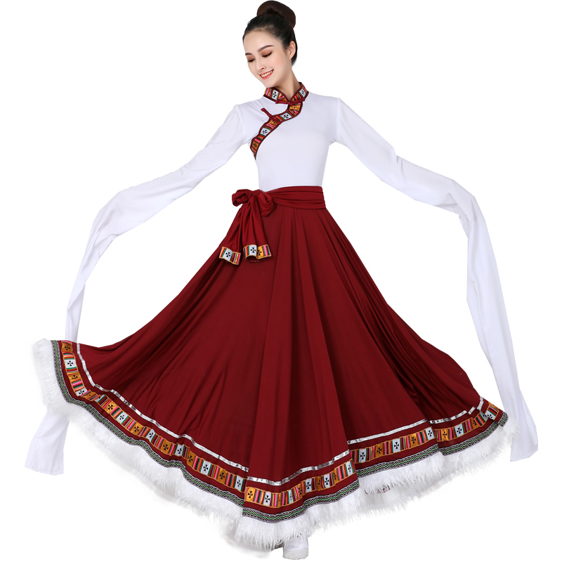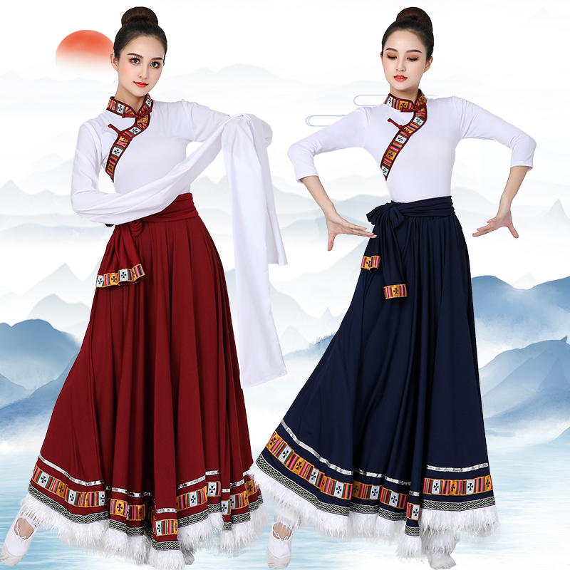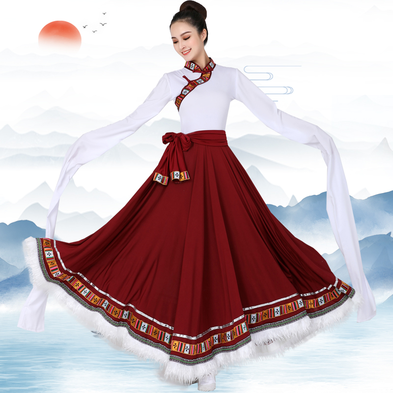 Костюмы для тибетских танцев Китайский национальный танец Женский водяной рукав Традиционный Тибетский наряд Большая юбка Практическая одежда хмонг