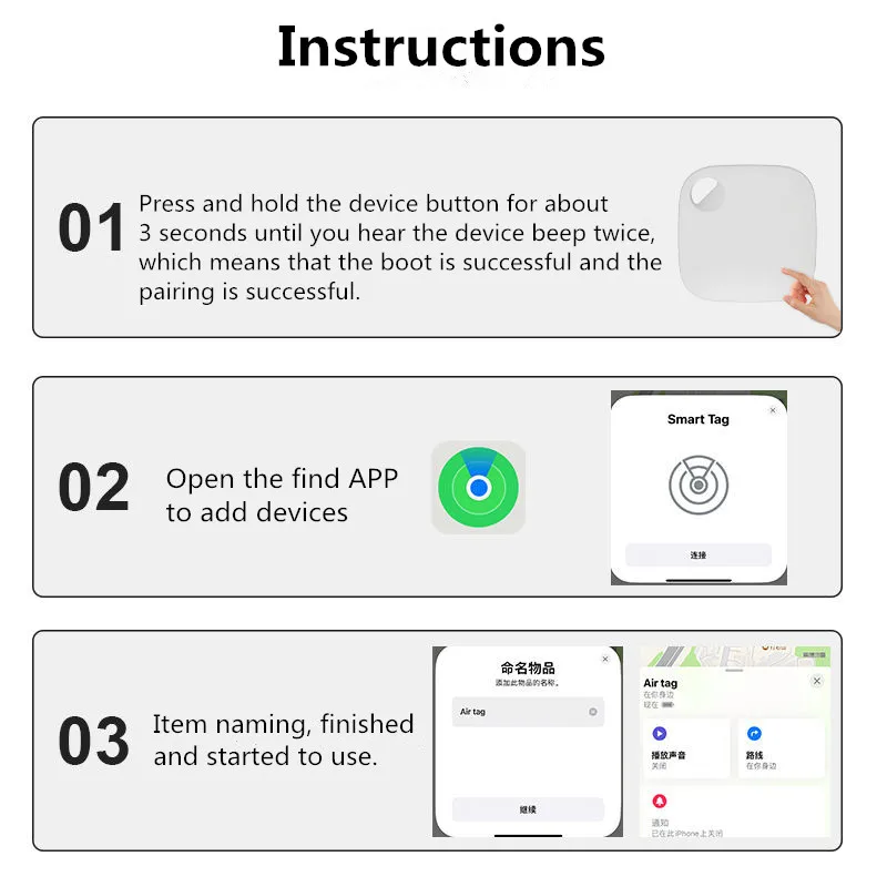 * Простая настройка одним нажатием мгновенно соединяет AirTag с вашим телефоном или Pad