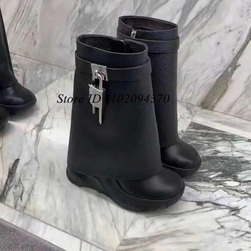 Высокие сапоги из зернистой кожи на толстой резиновой подошве; Женские байкерские сапоги до колена с замком; Популярная женская зимняя обувь на танкетке