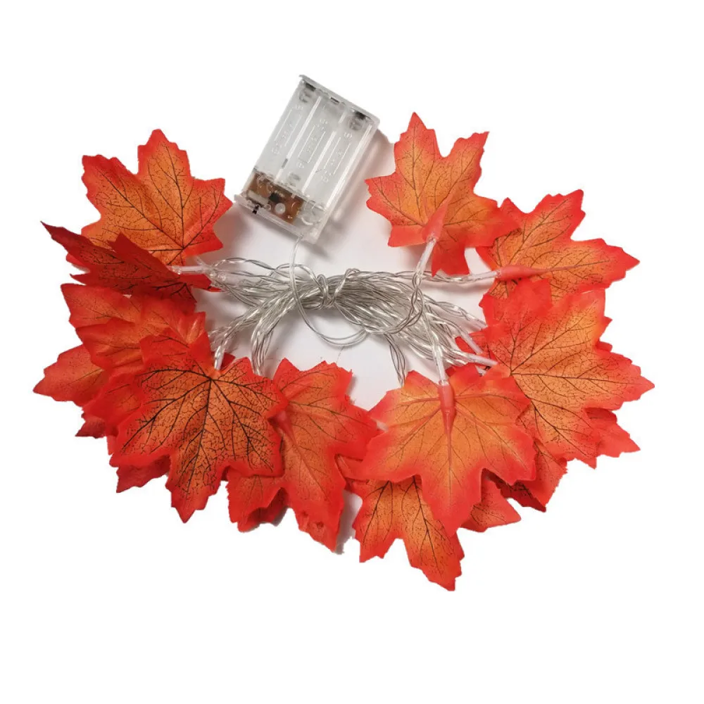 10/20Leds Pumpkin Maple Leaves Light String Halloween Thanksgiving String Lamp Autumn Plants Fence Party Stair Railing Decor