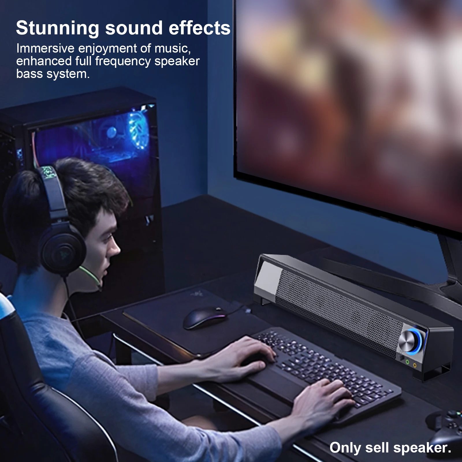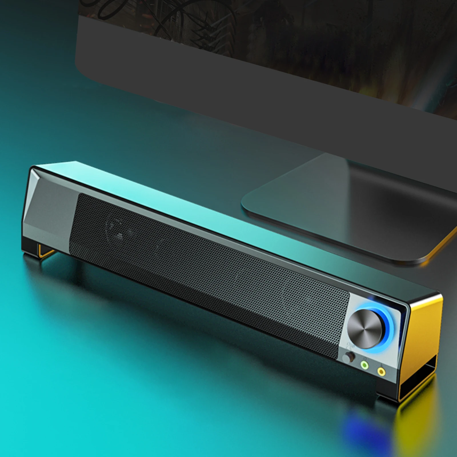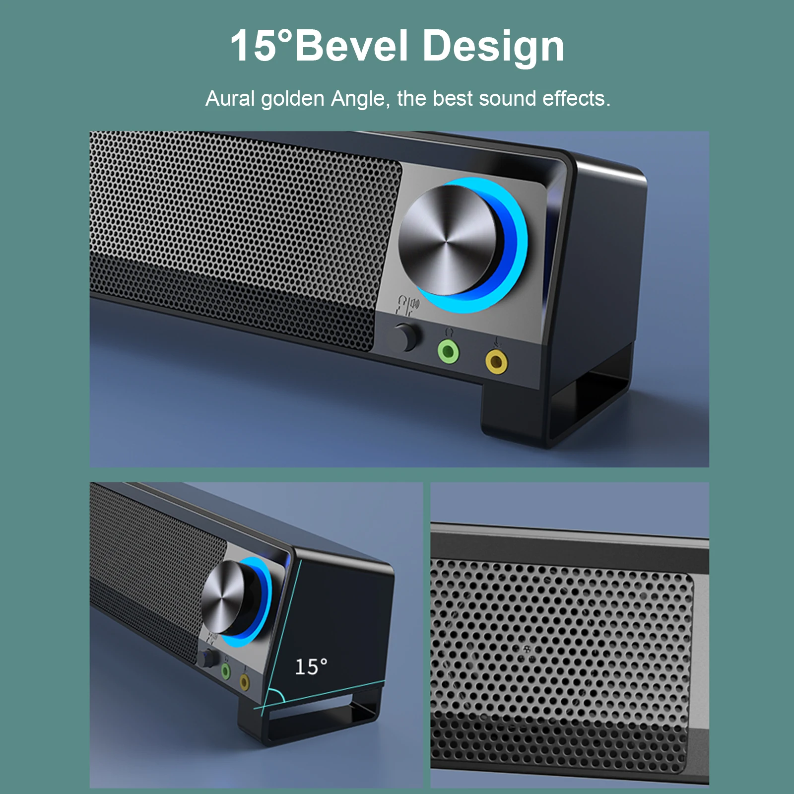 Это тонкий динамик с питанием от USB; Его устойчивый и без потерь басовый звуковой эффект и окружающие стереозвуки приносят вам прекрасную музыку.
