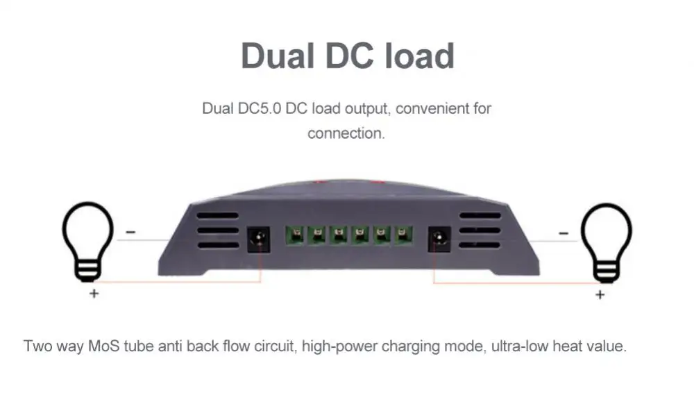 5. Двойная нагрузка постоянного тока: двойной DC5.0 выход нагрузки постоянного тока, легко подключить.