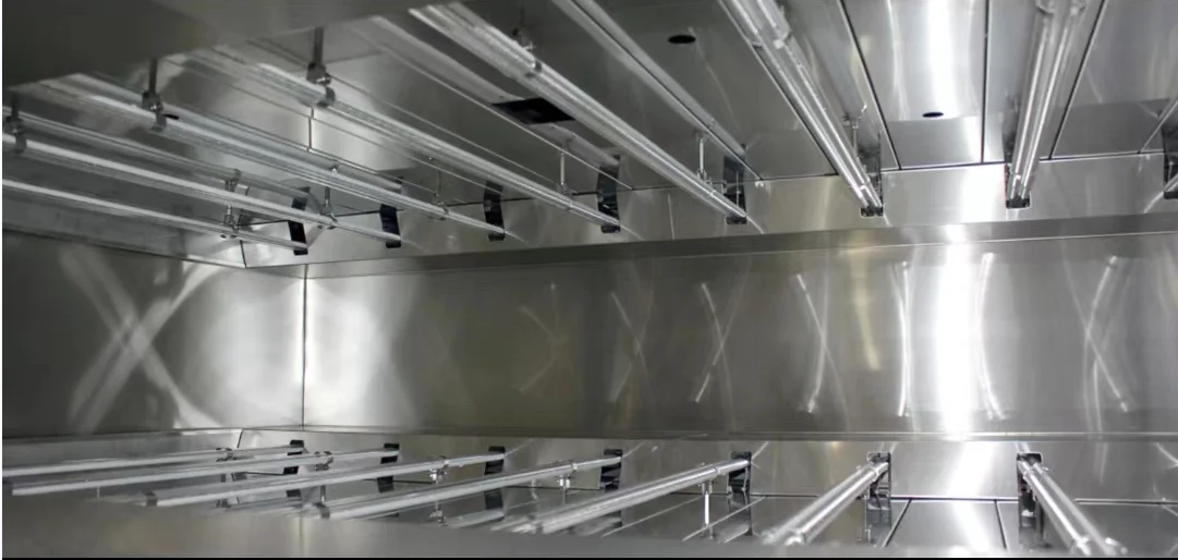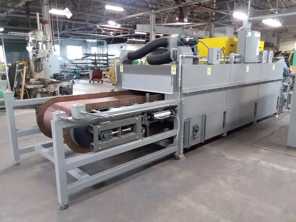 На фото здесь является промышленная конвейерная лента печи и контролирует Системы для отжига Большой кручения и ведерживающие большое напряжение на пропускная способность 6000 кг/час. Он включает в себя две зоны управления, осевые рециркуляционные вентиляторы, вытяжной вентилятор и вытяжки для извлечения дыма.