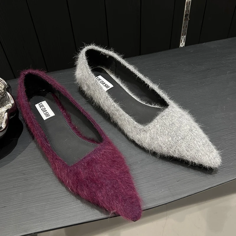 Женские туфли на плоской подошве однотонные стильные элегантные слипоны с
