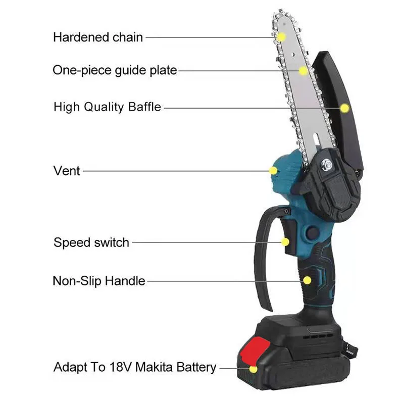 -Эта бензопила подходит для подключения интерфейса аккумуляторной батареи 18 в Makita.