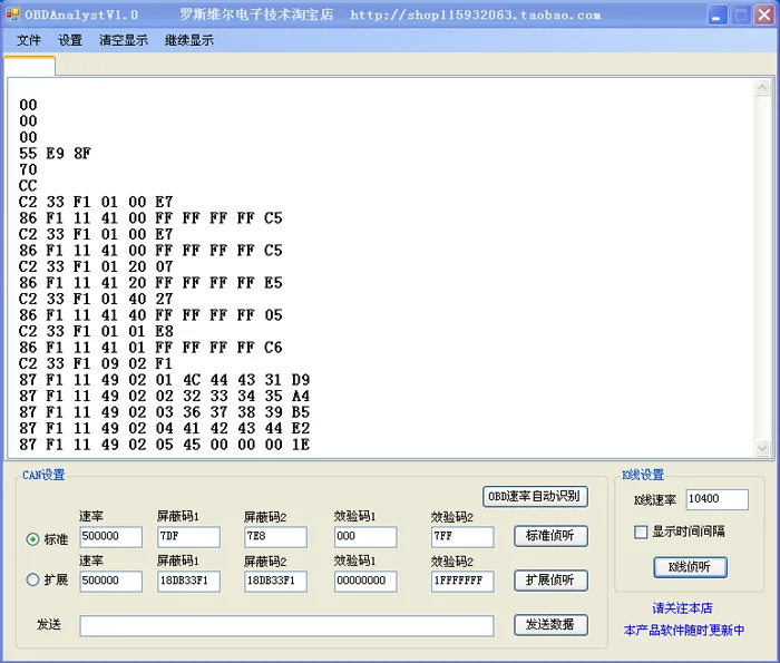 5.K-line data interception, ISO9141 data, this data is not KWP2000 format, with 68 6A query 48 6B reply. Common in Jetta Japanese car MITSUBISHI engine BYD and other vehicles.
