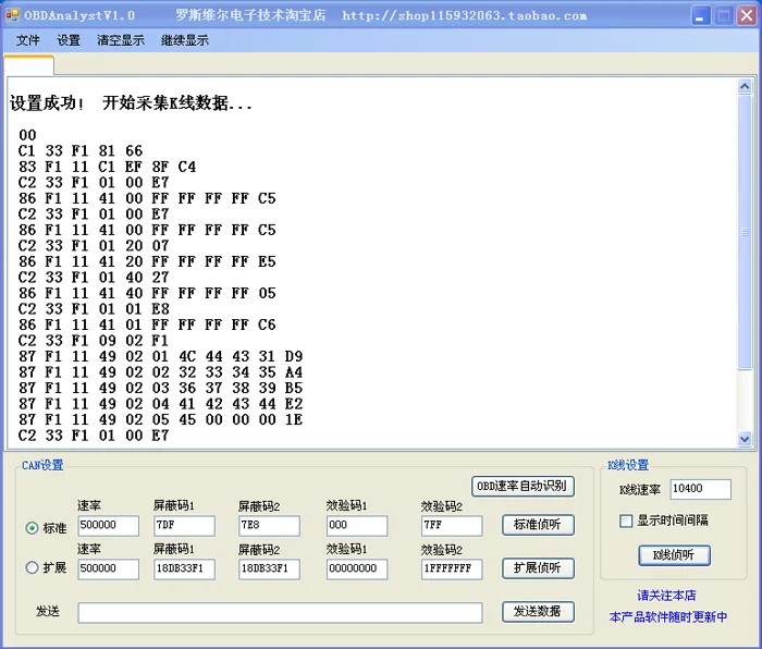 4. K линия данных прослушивания. Передние данные данных ISO14230 KWP2000-это процесс активации адреса 55, скорость обнаружения KW1 KW2 KW2, чтобы доставить обратный сигнал 70 на автомобиль, ответ на автомобиль CC подтвержден успешностью активации!