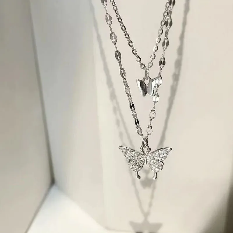 Роскошное ожерелье для женщин ожерелье бабочка блестящая двойная цепь Подвеска в области ключицы годовщина подарок ювелирные изделия