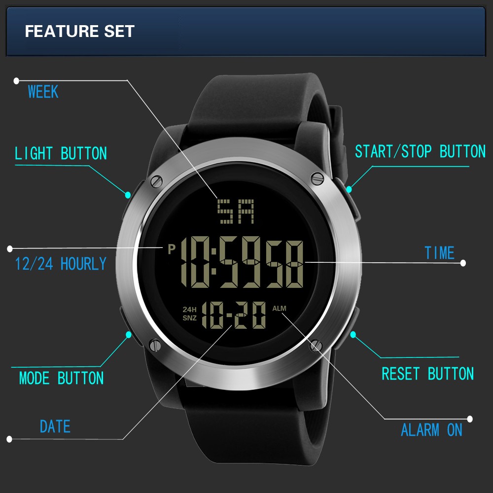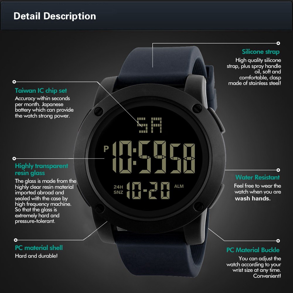 A-F часов:Модные водонепроницаемые мужские спортивные наручные часы для мальчиков с ЖК-дисплеем и цифровым секундомером
