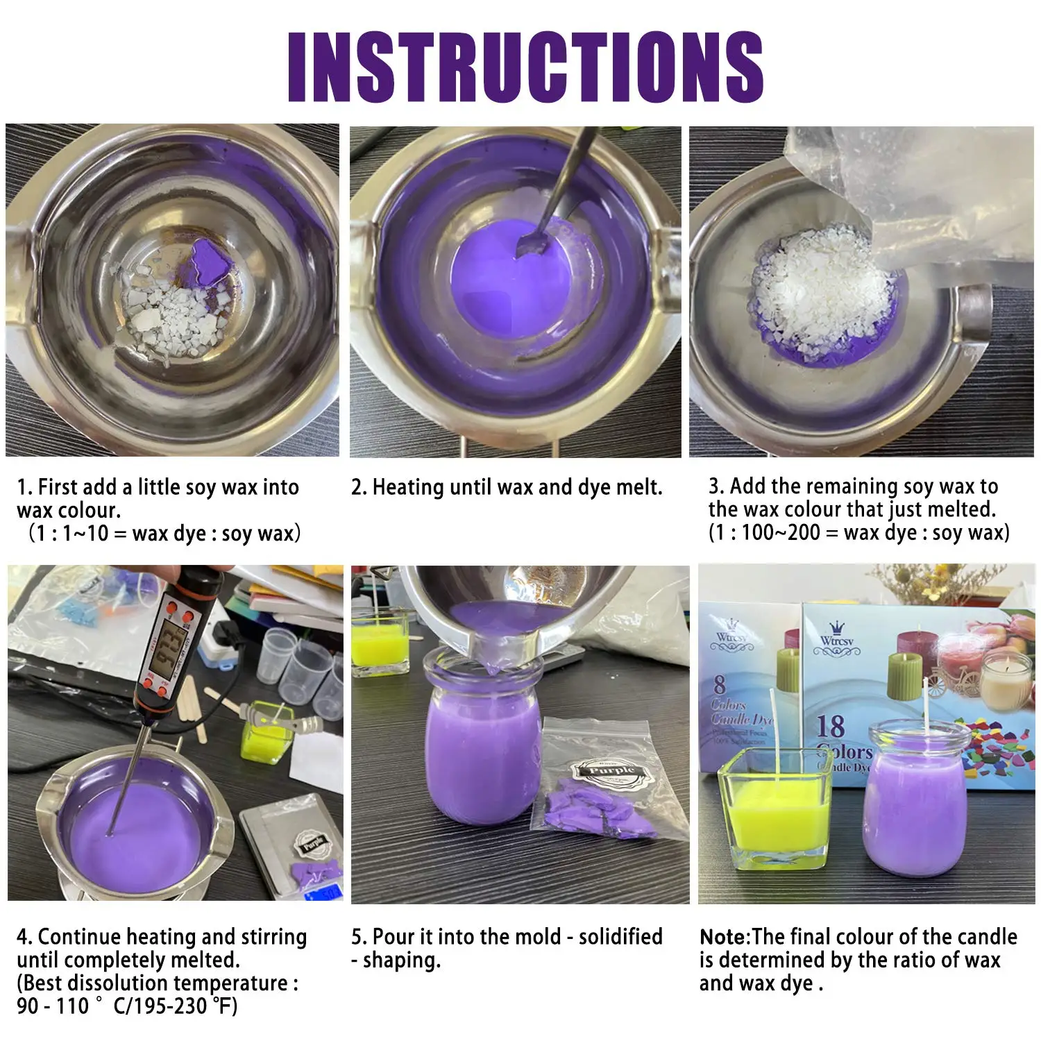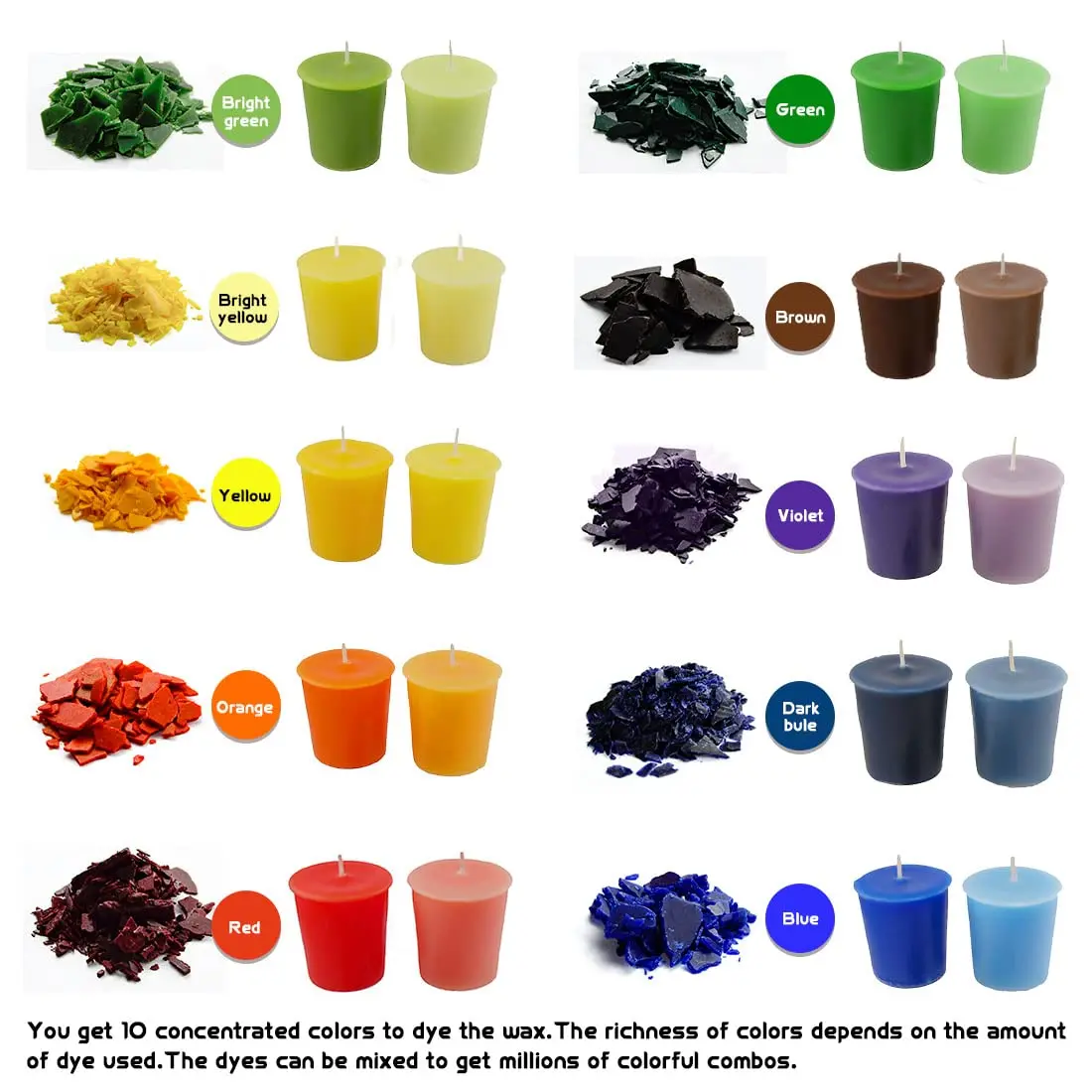💖Цветовые недостатки свечей💖: Всегда учитывайте Исходный цвет воска, который вы используете, потому что, когда он смешивается с цветовым чипом, окончательный цвет свечи может быть не таким, как ожидалось
