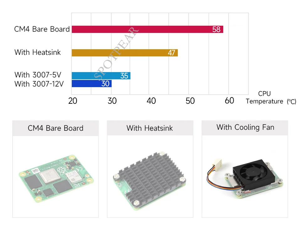 Только для справки, CM4 и доски на основе не включены.Сравнение решений для охлаждения CM4