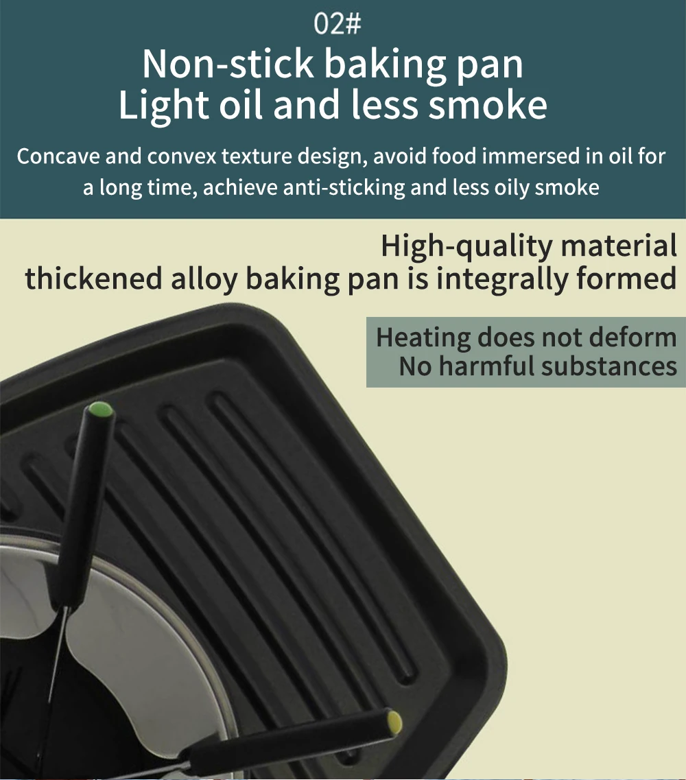 • [Низкое обслуживание] после еды съемный лист для выпечки и фондю в сборе облегчают очистку гриля. Электрическая духовка не прилипает к покрытию и может легко удалить вкусные блюда из кастрюли.