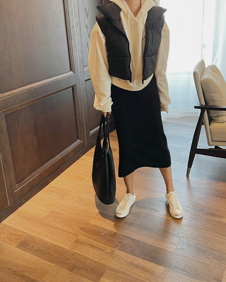 Юбка Женская осенне-зимняя трапециевидная выше колена с завышенной талией и