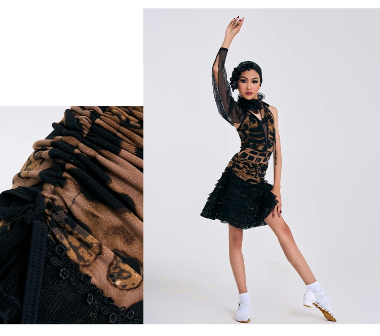Женское платье для латиноамериканских танцев W20A153 с полосками по одной стороне