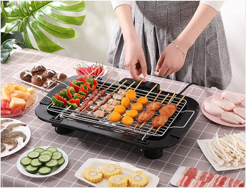 Многофункциональная домашняя бездымный гриль 2000 Вт электрическая сковорода для выпечки сковорода для внутреннего барбекю гриль машина с контролем температуры