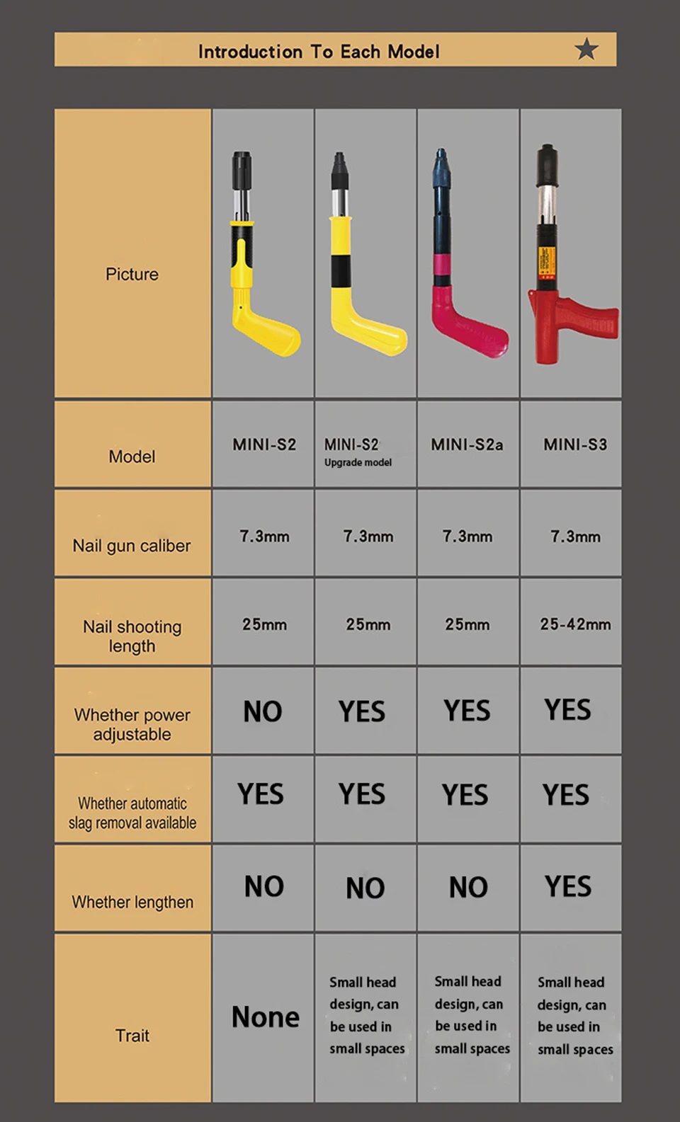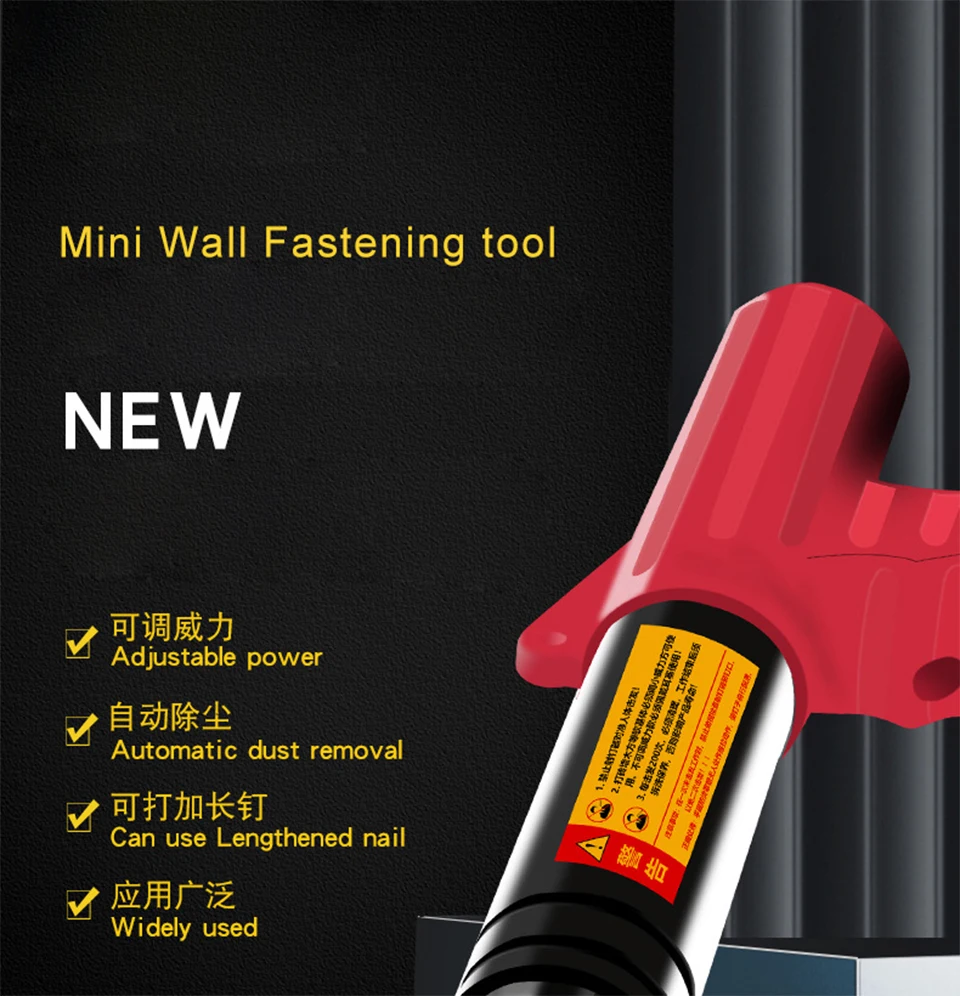 1. Это займет всего 0,1 S проникнуть 3 мм стальная пластина для забивание гвоздей сильная проникающая способность. Этот пистолет для ногтей подходит для ногтей длиной: 25 мм. Работоспособность: красная кирпичная стена/бетон/3 мм стальная пластина/толстая пластина может быть произвольно повреждена