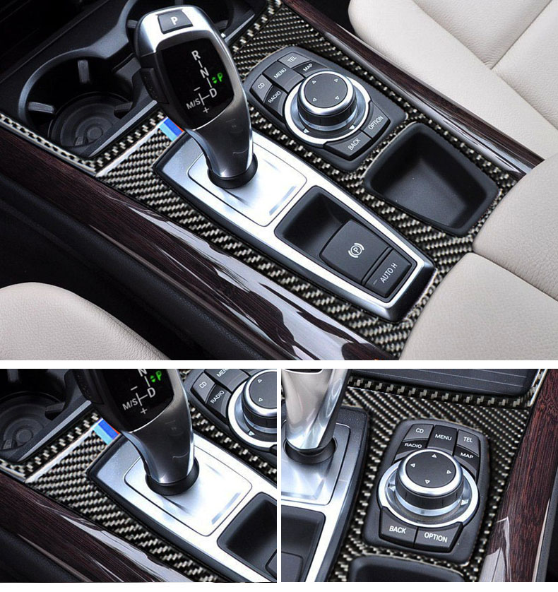 Карбоновое волокно, внутренняя крышка переключения передач для автомобиля, декоративная панель, наклейка для BMW E70 E71 X5 X6