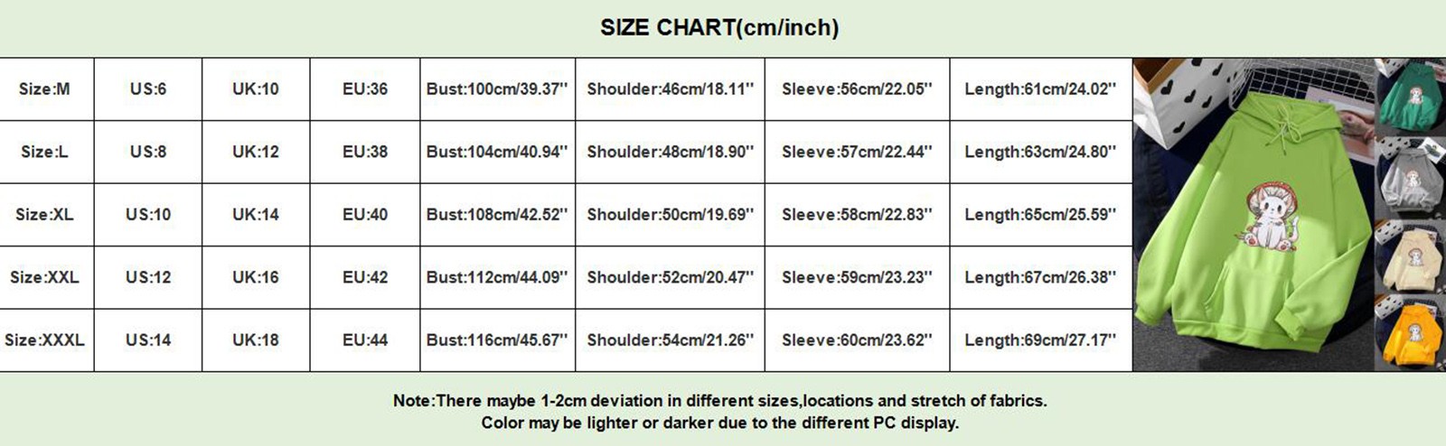 Размер: XL | США: 10 | Великобритания: 14 | ЕС: 40 | Обхват груди: 108 см/42,52 дюйма | Плечо: 50 см/19,69'' | Рукав: 58 см/22,83 дюйма | Длина: 65 см/25,59'' |