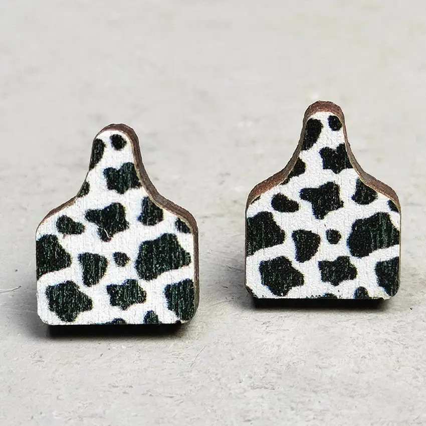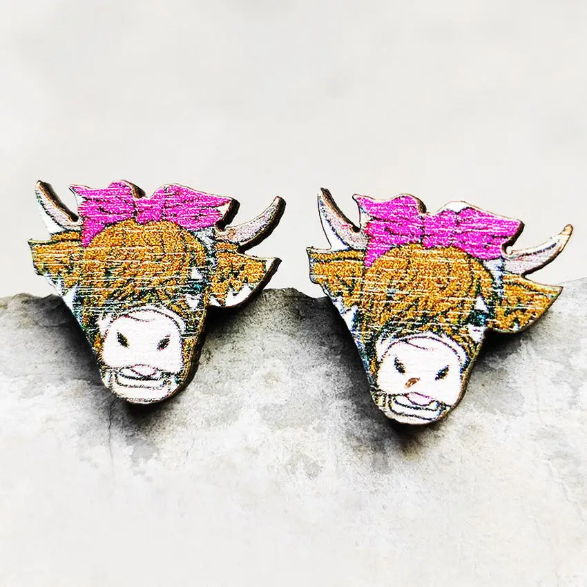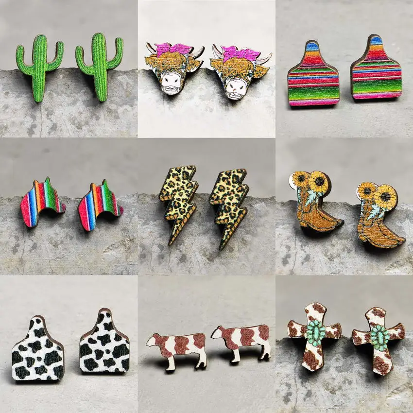 Симпатичные Мини Деревянные кактус Крупный рогатый скот животные западные серьги-гвоздики для женщин пастушка деревянная коровья бирка загрузки серьги ювелирные изделия оптовая продажа